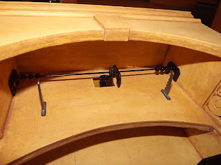 I then added molding on the base of the side supports and inserted the brass rods.